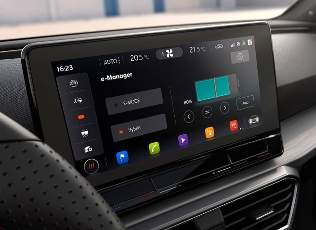 Nuova SEAT Leon mild-hybrid (eTSI) raggiunge livelli di efficienza ancora più elevati. Utilizza un alternatore-starter a 48 V e una batteria agli ioni di litio, consentendo di procedere a motore spento in alcune situazioni di guida, recuperare energia in frenata e supportare il motore con una leggera assistenza elettrica.