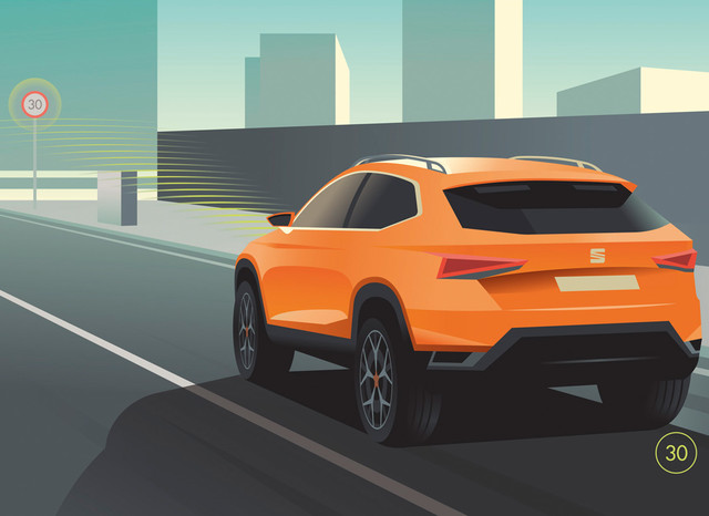 Visualizza i limiti di velocità e i divieti di sorpasso, sia sul SEAT Virtual Cockpit che sul touchscreen sospeso per una migliore visibilità.